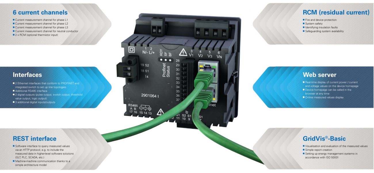 Uz Janitza UMG mjerne uređaje, korisnici imaju potpunu kontrolu nad cijelim procesom mjerenja: električne i energetske parametare, rezolucije podataka (različita prosječna vremena) i intervale upita mogu se odabrati po potrebi; također i aplikacijski protokoli kao što su FTP, Modbus, PROFIBUS, PROFINET, HTTP / REST, BACnet, itd