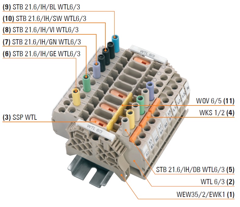 Weidmuller WTL serija predstavlja strujne rastavne redne stezaljke do 6mm2. Uz dodatak kliznih i fiksnih kratkospojnika, moguće je mjerenje praktički bilo koje kombinacije. Ispitne utičnice postoje u različitim bojama za lakše označavanje strujnih i naponskih grana.